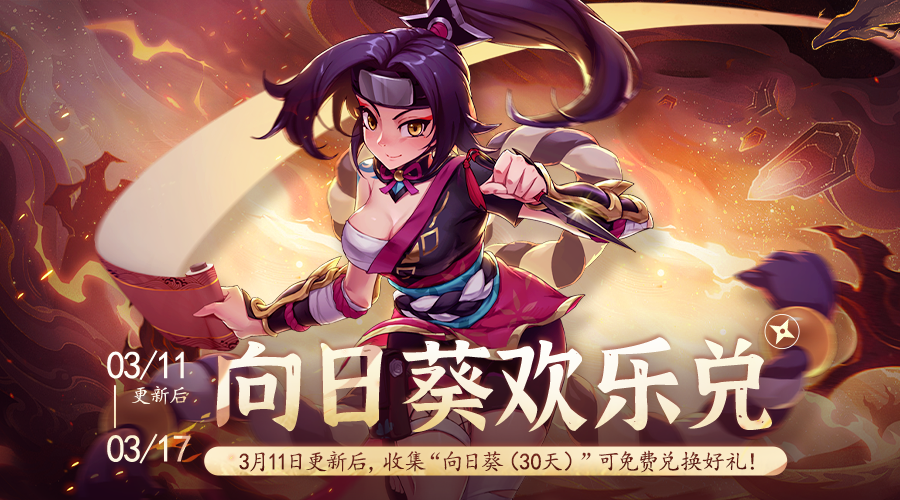 3月11日更新后,收集“向日葵(30天)”可免费兑换好礼!